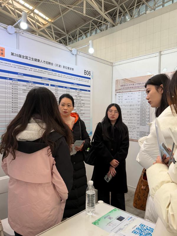 为深化校企合作,精准对接人才需求,促进毕业生精准就业。2025年11月22日,医学部党工委委员、基础医学院党委副书记邓玮率队赴天津梅江会展中心参加第28届全国医药卫生行业人才招聘会(天津场)暨第七届京津冀卫生健康人才交流会,开展访企拓岗促就业专项行动。此次活动由国家卫生健康委人才交流服务中心、北京市、天津市、河北省卫生健康委联合主办,汇聚全国17个省市近百家优质医疗卫生单位及知名企业,现场发布近万个就业岗位,吸引近万名求职者参与。