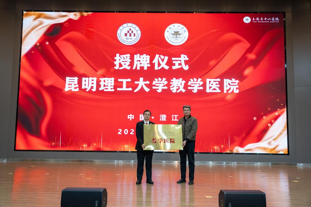 2025年12月26日,玉溪市中山医院举办医院周年总结会,期间举行了昆明理工大学教学医院授牌仪式。玉溪市委副书记、市委宣传部长王美荣,玉溪市副市长陈静,昆明理工大学医学部副主任荆忠国,澄江市委副书记、市长王江飞、玉溪市中山医院院长谭进富、医院全体班子成员等出席。会议由玉溪市中山医院党委书记施纯律主持。
