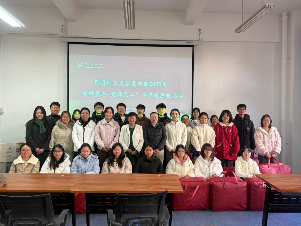 岁末天寒,暖意先行。为切实关怀学生校园生活,让学子们在冬日校园中感受到家的温暖与学部的关怀,11月27日,昆明理工大学医学部“情暖寒冬爱满昆工”冬季送温暖活动温情启幕。医学部党工委常务副书记、基础医学院党委书记陈咏梅、学工办主任祝汉成、研教办主任陈明会、团委书记高俐、培养办敖博以及临床251班主任邵瑞飞、临床253班主任陶志强、2024级辅导员庄文婷、2025级辅导员刘萌共同参与活动,为同学们送上承载着关怀的“冬日温暖”。