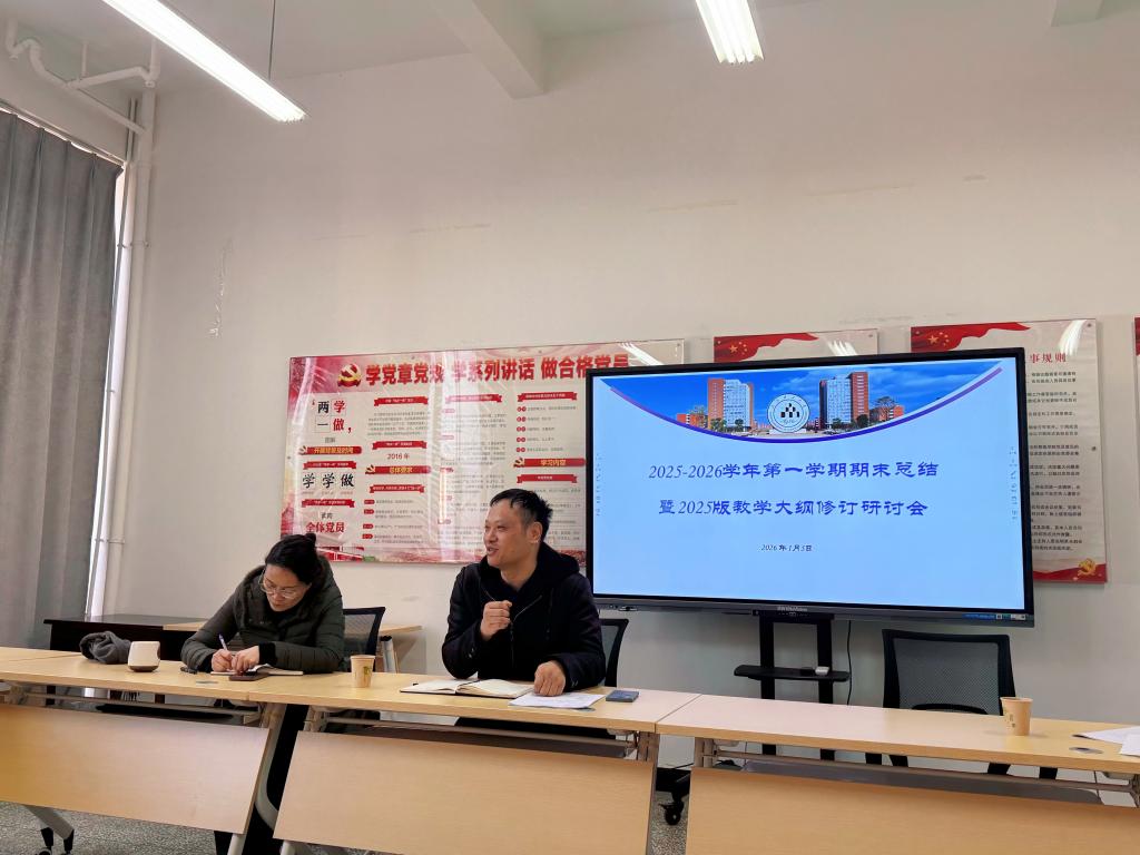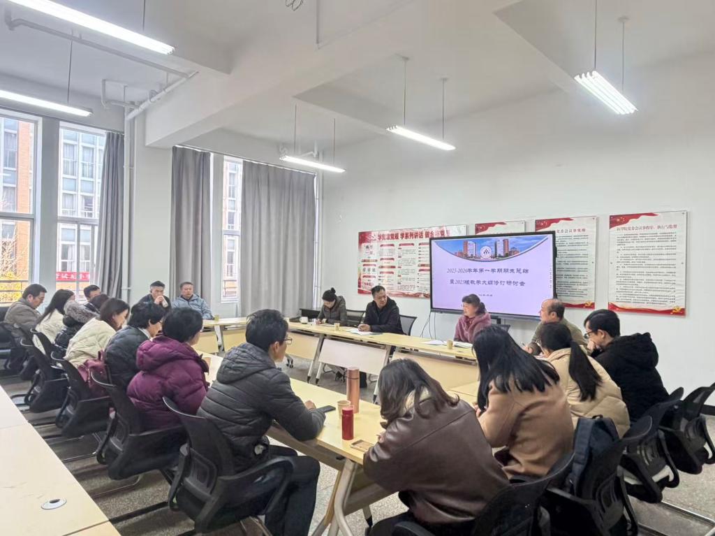 2026年1月5日上午,基础医学院在呈贡校区医学楼208-2会议室组织召开2025-2026学年第一学期期末工作总结暨2025版人才培养方案课程教学大纲修订工作部署会。会议旨在总结本学期教学成果,全面启动将人工智能(AI)深度融入教学大纲的修订工作。医学部党工委常务副书记、基础医学院党委书记陈咏梅、学校教务处副处长宋庆和、基础医学院副院长张继虹、基础医学院教学指导委员会全体成员、教研室主任和副主任参加本次会议。会议由副院长邓仪昊主持。