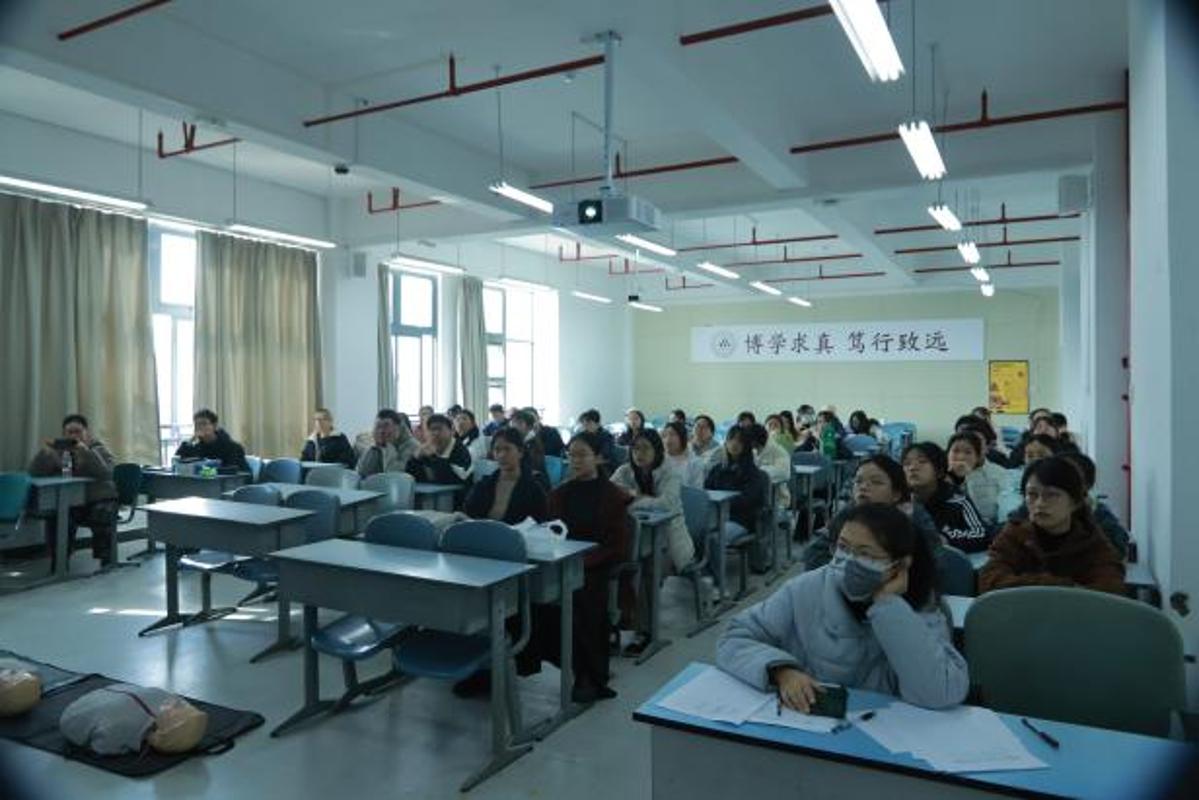 为进一步提高学生群体对急救技能的理解与掌握,筑牢校园安全防线,2025年11月22日,由基础医学院学生第二党支部、医学部团委学生会、昆明理工大学医路有你协会(学生)联合主办的“急救必修课,安全不缺席”培训活动分别在新迎、呈贡两校区顺利举行。本次活动特邀昆明理工大学附属安宁市第一人民医院疼痛科副主任周国忠担任主讲,通过理论加实操的方式,有效促进了参训学生对心肺复苏(CPR)的掌握。
