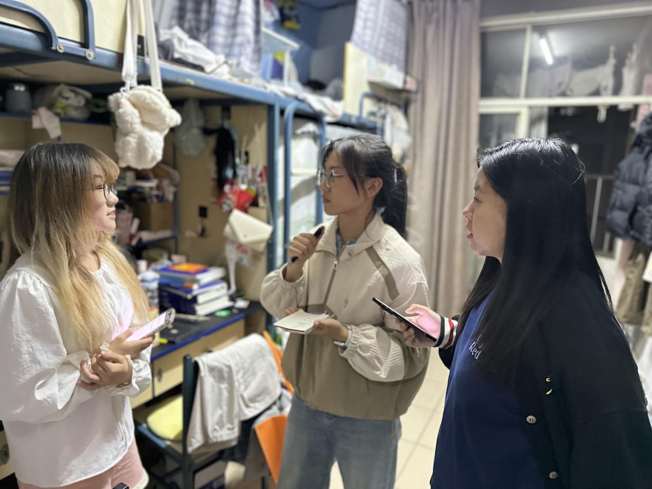 本月,各学习小组在组长带领下,深入呈贡校区和新迎校区,对五个年级学生宿舍开展全覆盖走访,认真摸排学生学习生活情况,及时掌握思想动态,细致了解大家在学业、生活、心理、成长规划、就业等方面遇到的实际困难和疑惑。